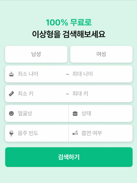 항목별 키워드를 입력해이상형을 검색할 수 있어요.
